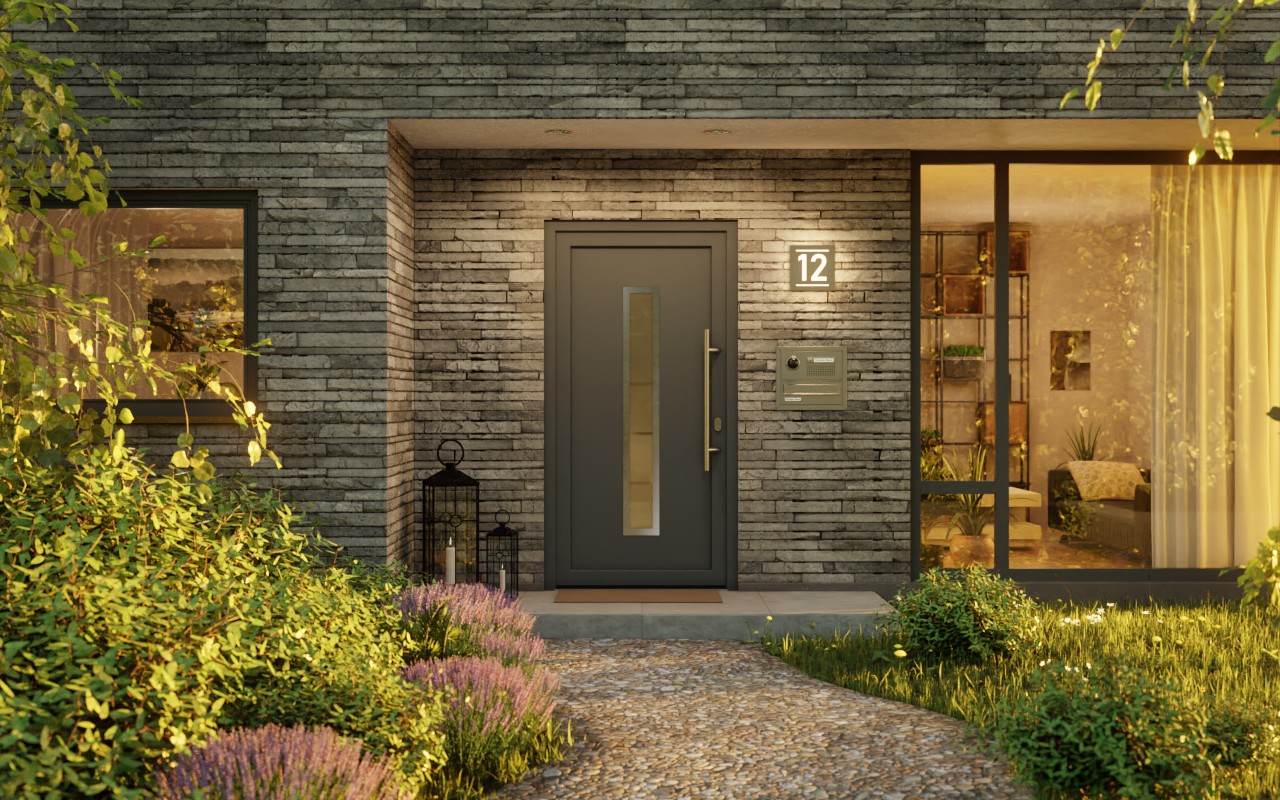 • Zakres dostawy: Drzwi wejściowe z ościeżnicą, zawiasami, zamkiem i progiem, inne elementy konfigurowalne