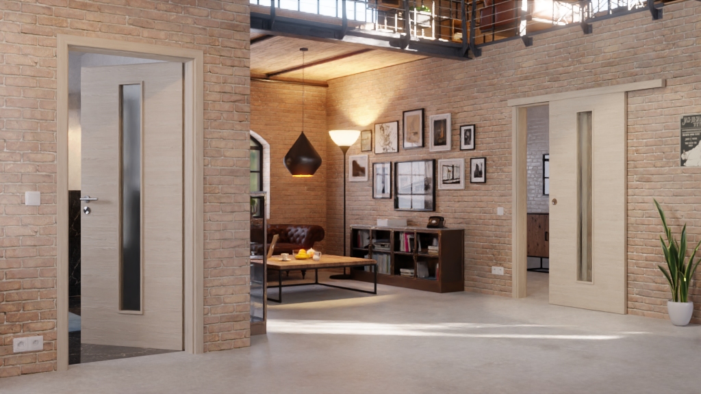 Nowoczesne drzwi przesuwne w Platynowym Dębie Cross EiC 424 PortaLit z solidnymi właściwościami: