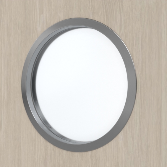 okrągły otwór świetlny w górnej części skrzydła drzwiowego