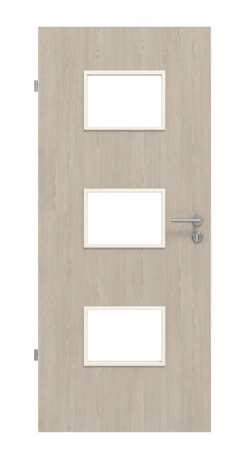 Ten skrzydło drzwiowe dostarczane jest bez wkładu szklanego. Odpowiednie szklenie jest dostępne za dodatkową opłatą.