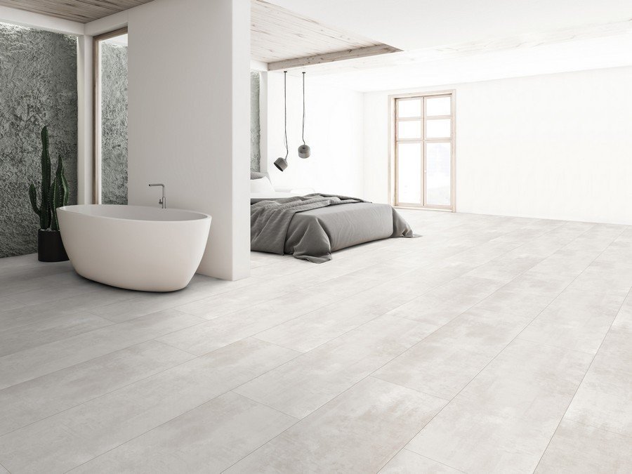 Ekologiczna podłoga o wyglądzie betonu z odporną warstwą wierzchnią.