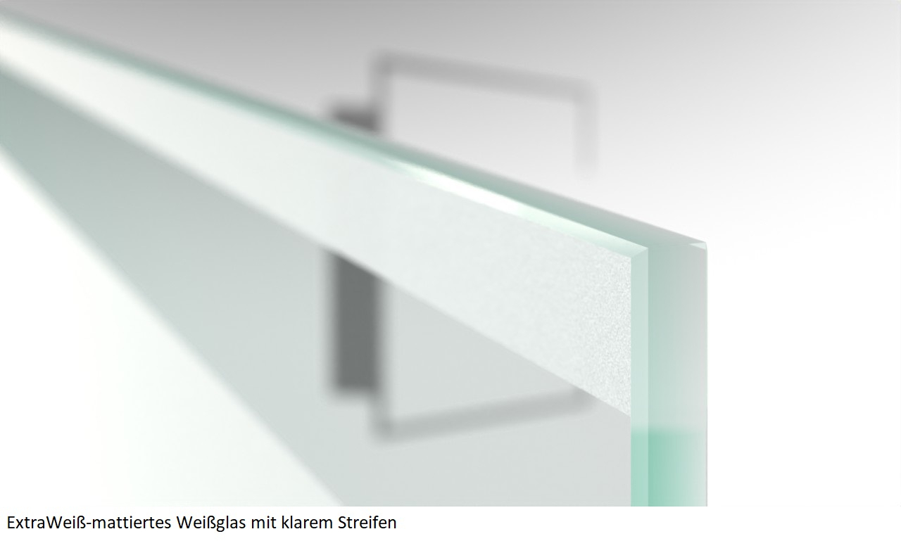 4 przejrzyste paski o szerokości 7 mm biegną poziomo przez matowe skrzydło drzwi. Ten prosty motyw nadaje drzwiom szklanym ponadczasowy wygląd. Dzięki prostolinijnej, pozbawionej ozdób estetyce idealnie wpasowuje się w nowoczesne wnętrze.