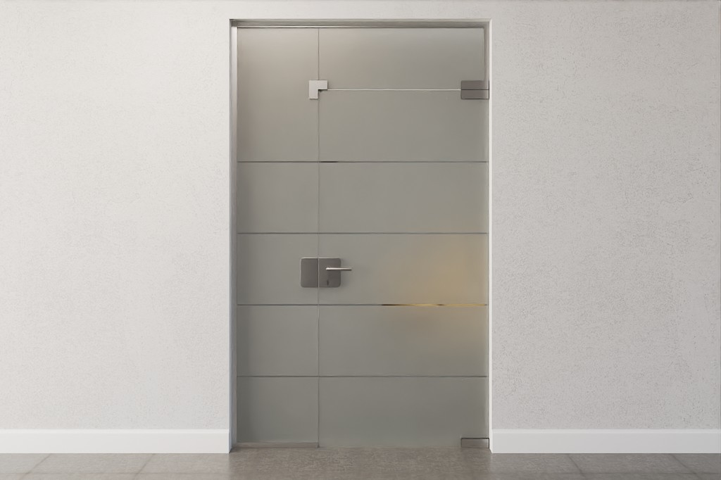 Stonowany wzór w paski wyraźnie przebiega przez matowe szkło. Cztery delikatne linie poziome wkomponowują się dyskretnie w każdą aranżację wnętrza.