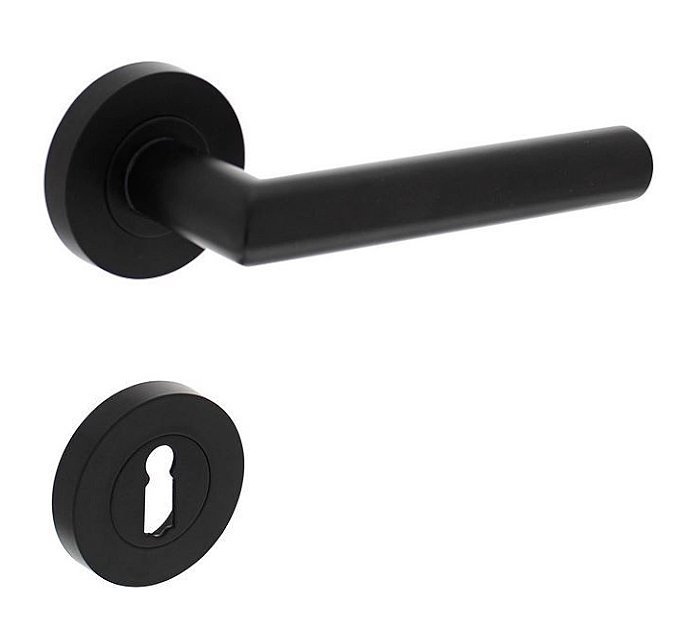 Matowo-czarna klamka do drzwi wewnętrznych z wytrzymałego zamaku: