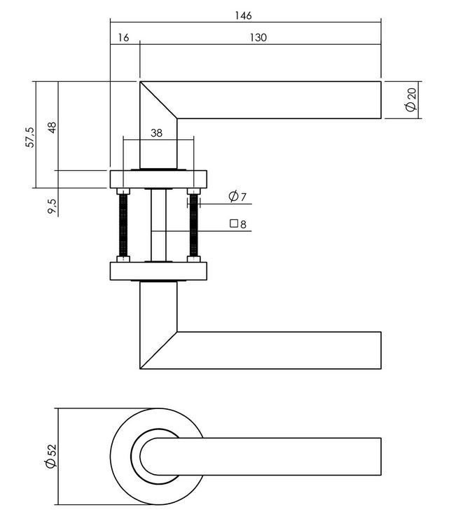 Pod czarną powierzchnią znajduje się rdzeń z Zamak. Dzięki sprężynie powrotnej wewnątrz, klamka zawsze wraca do poziomej pozycji.