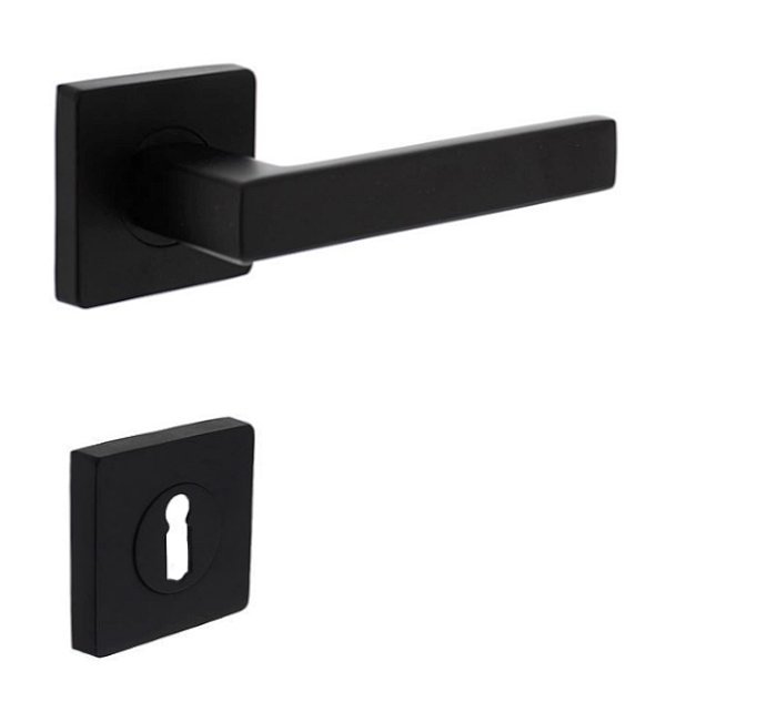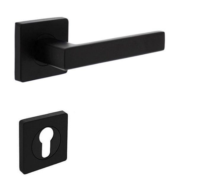 Prostokątna klamka do drzwi wewnętrznych z Zamak z matowo-czarną powierzchnią: