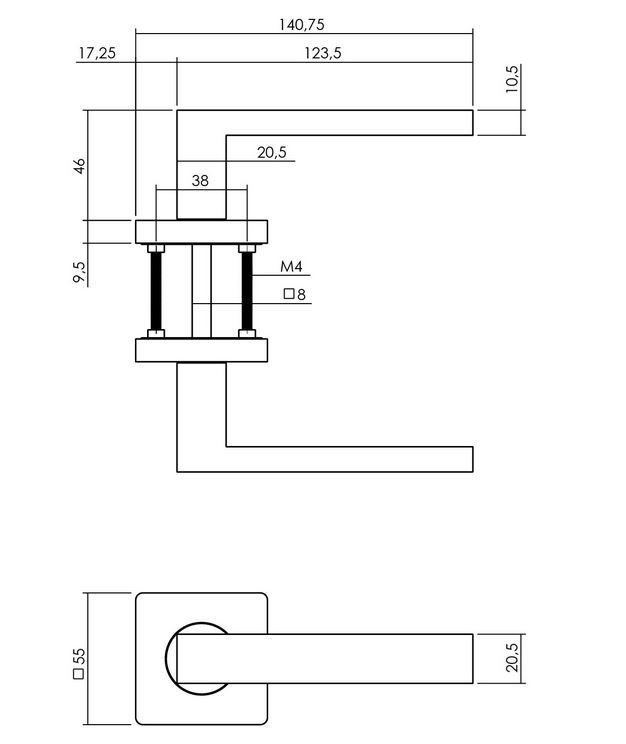 W rdzeniu zestaw wykonany jest z wytrzymałego zamaku. Aby klamka wracała do poziomej pozycji po częstym użyciu, model wyposażono w sprężynę powrotną.