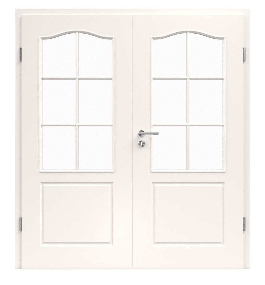 Drzwi podwójne emanują jasną harmonią, dzięki białej lakierowanej powierzchni. Wielowarstwowa powłoka lakiernicza uzupełnia trwałość modelu.