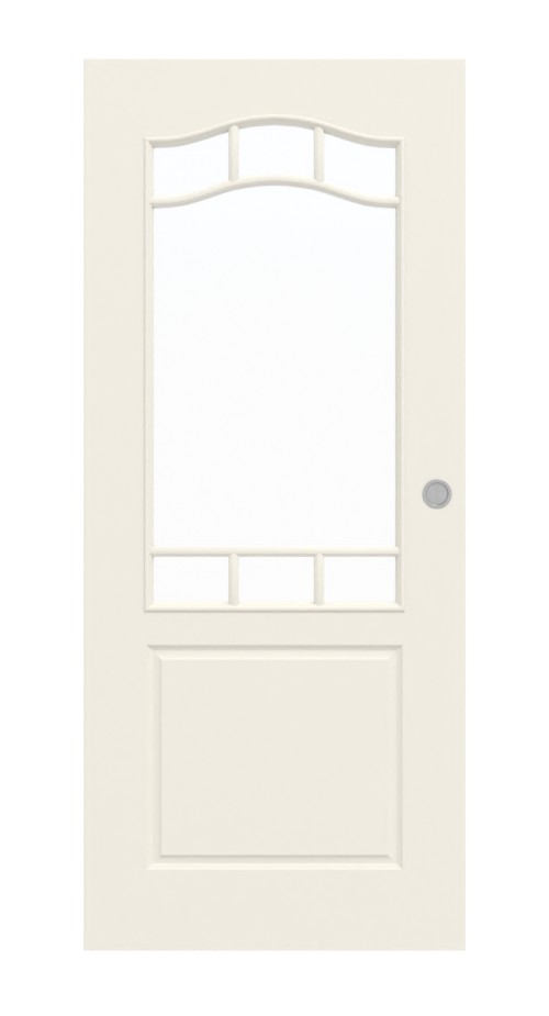 Kwadratowe, sugerowane wypełnienie w dolnej części drzwi jest częścią wyglądu wypełnienia. Na górze zachwyca otworem świetlnym. Jest otoczona pionowymi słupkami na górnej i dolnej krawędzi, które są przerywane przez dwa poziome słupki. Całość wzbogaca Twoje pomieszczenie delikatnym światłem.
