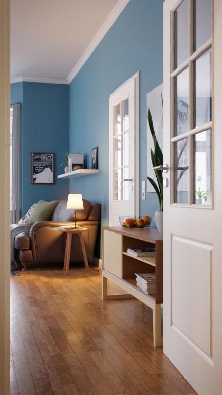 Styl wiejski i szlachetna optyka wypełnienia czynią drzwi wewnętrzne przytulnym detalem dla wyrafinowanego gustu.