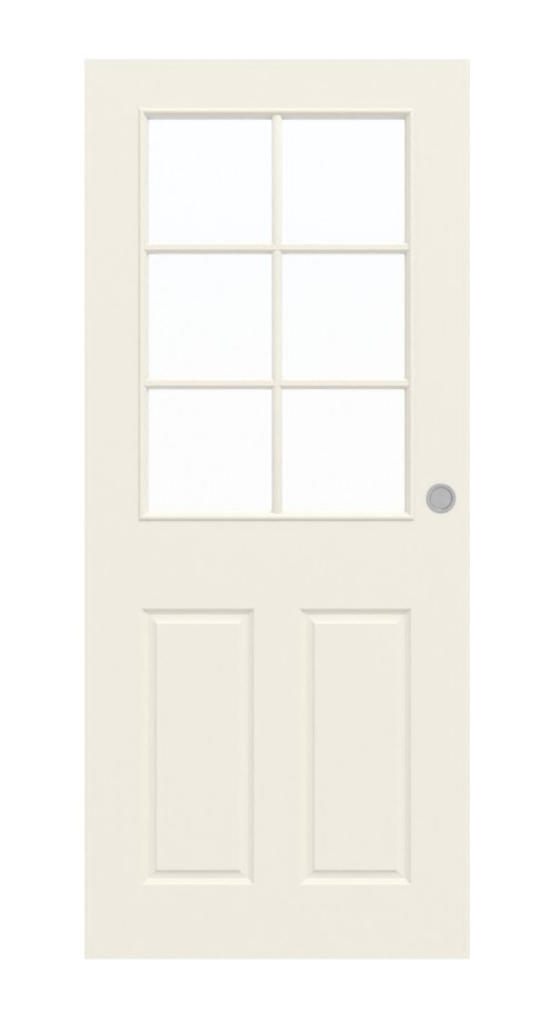 Dzięki wyglądowi wypełnienia i wyraźnym liniom, te drzwi przesuwne elegancko wkomponowują się w Twoje wnętrze. W dolnej części obu skrzydeł drzwi znajdują się po dwie sugerowane wypełnienia drewniane. Na górze skrzydła drzwi umieszczono kwadratowe okno szklane, które elegancko akcentuje trzy listwy. Dzięki temu wycięciu uzyskujesz wspaniałą grę świateł w swoim pomieszczeniu.