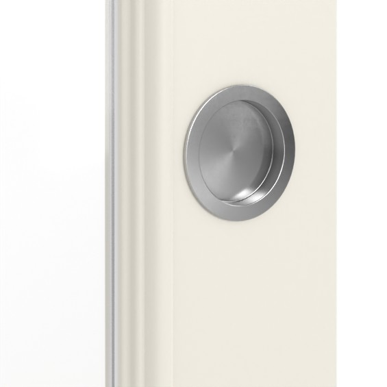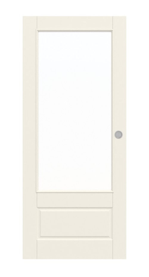 W skrzydle drzwi znajduje się szkło, które zajmuje górne dwie trzecie drzwi. Wygląd wypełnienia dopełnia prostokątne, sugerowane wypełnienie w dolnej części. Frezowania wzdłuż rogów sprytnie łączą oba elementy i eksponują je. Dzięki wycięciu do pomieszczenia wpada dużo światła.