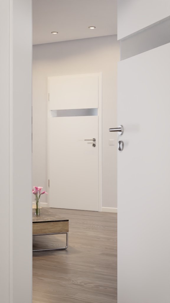 Stylowo zrealizowany model drzwi: Dzięki trwałej drzwicom wewnętrznym Pure 1 z zamkiem w białym lakierze od Hörmann wprowadzisz estetykę i funkcjonalność do swojego domu.