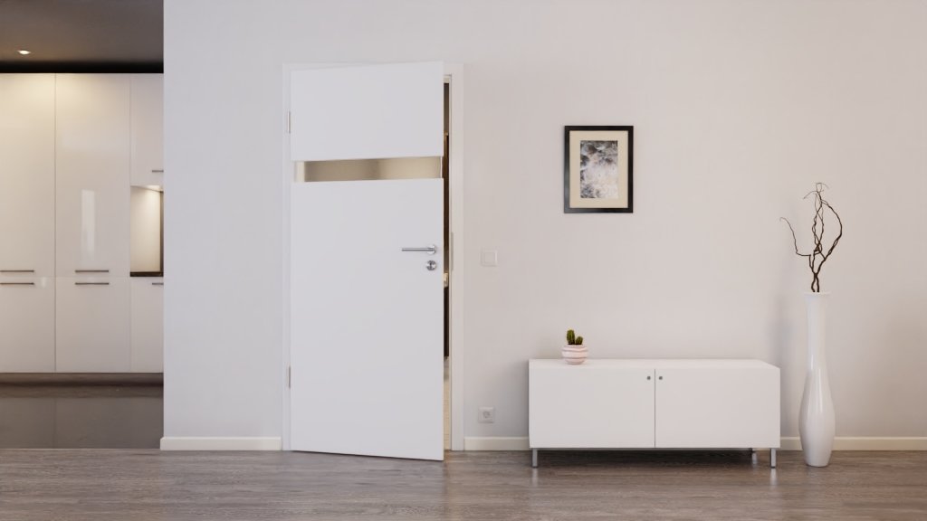 Efektowny element stylu: Dzięki tej drzwi wewnętrznym Pure 1 w białym wykończeniu od Hörmann zyskujesz trwałość i estetykę.