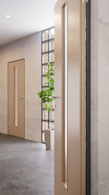 • Designerskie drzwi na równi ze ścianą z przeszkleniem