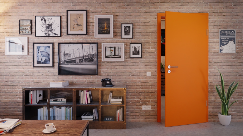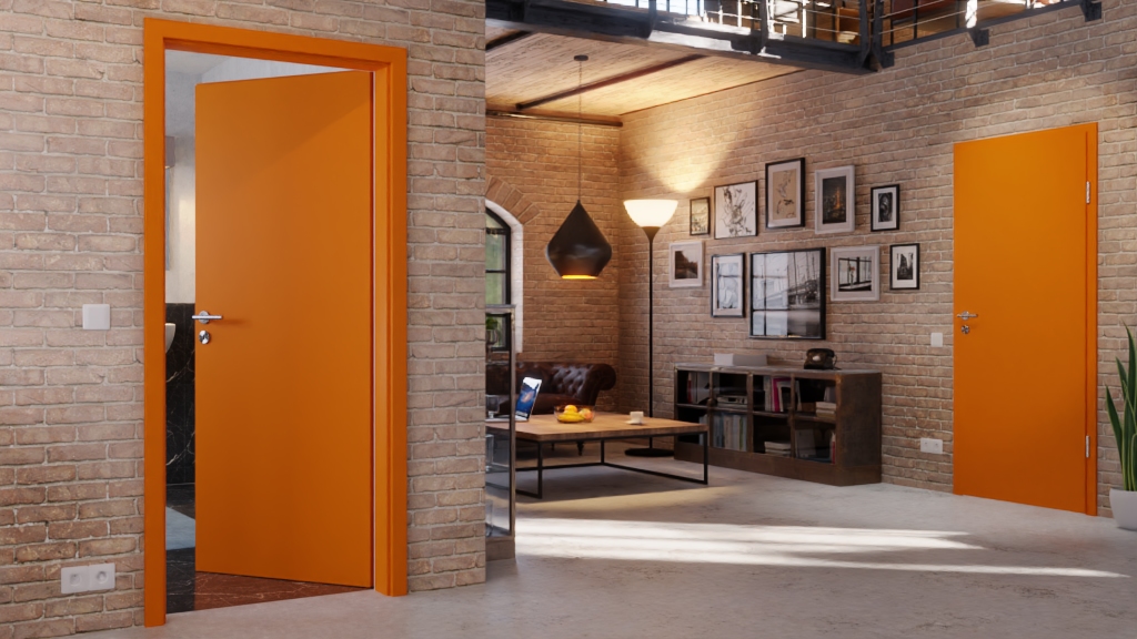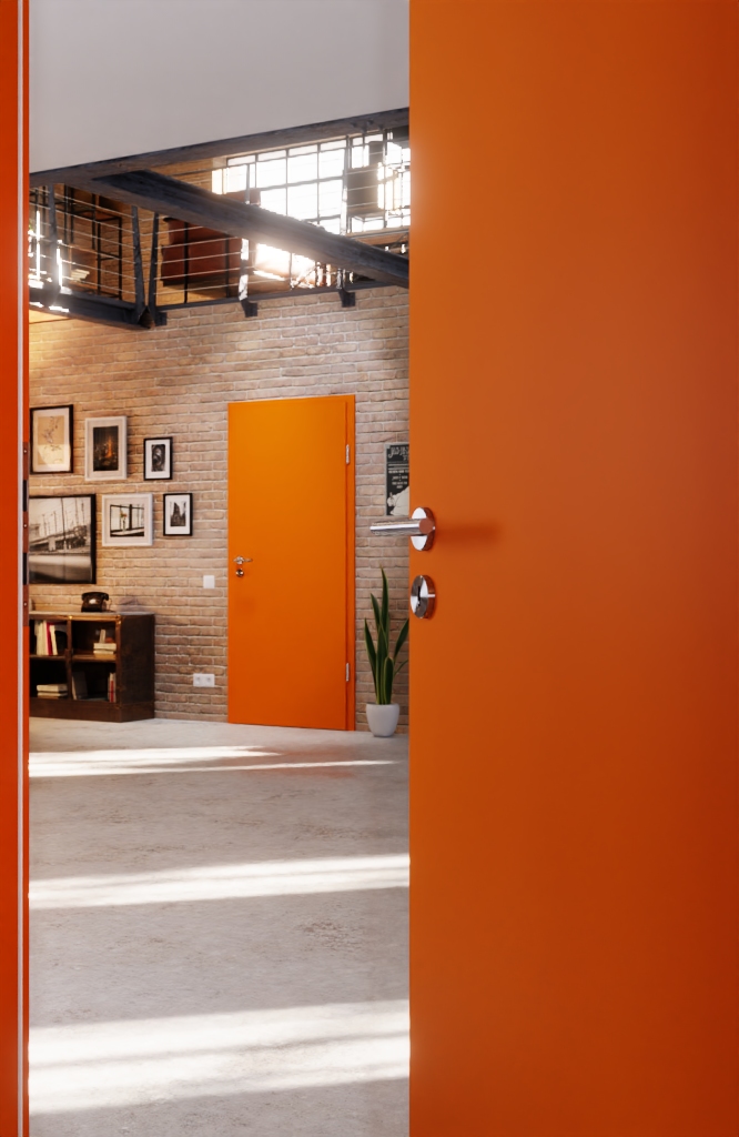 • Drzwi wewnętrzne w kolorze pomarańczowy jasny