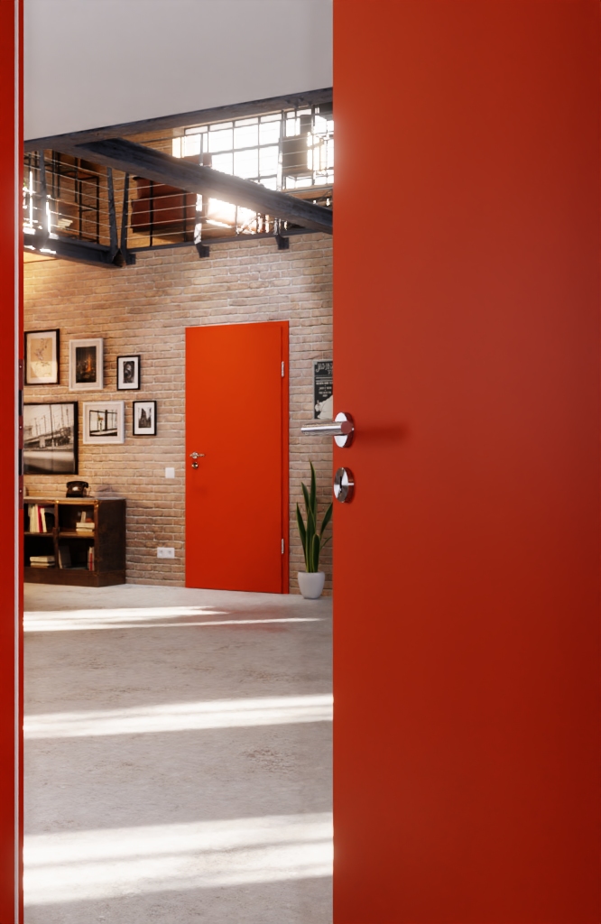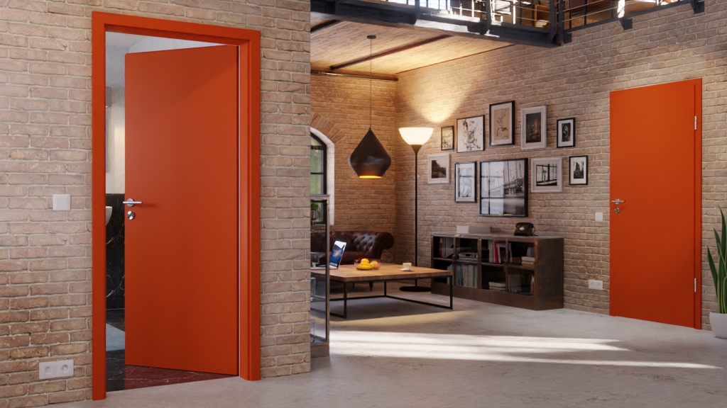 Dla każdego odpowiedni odcień: Dzięki prostej, gładkiej konstrukcji skrzydła drzwi drzwi wewnętrzne Lebo w kolorze pomarańczowym pasują do każdego stylu wnętrza.