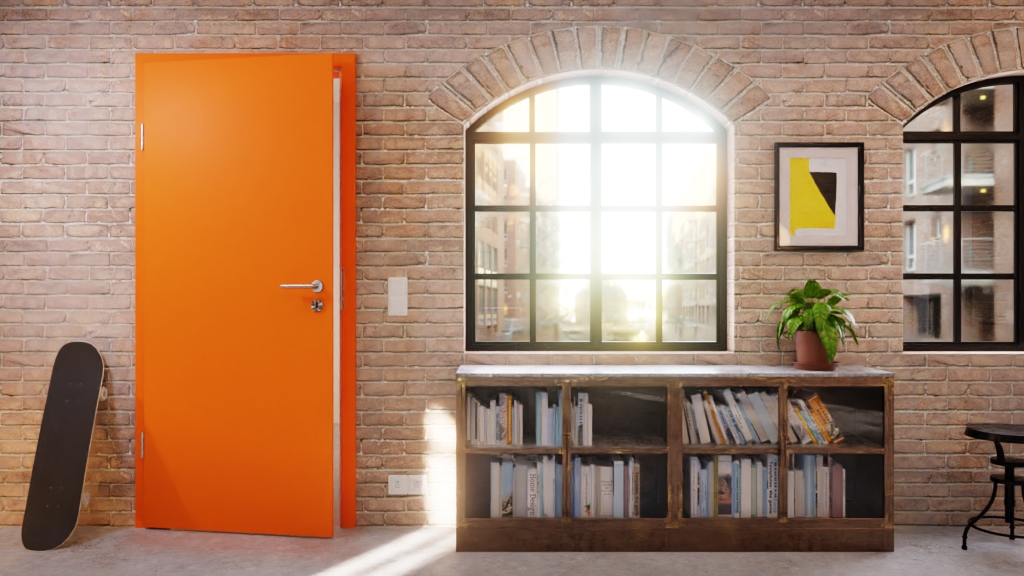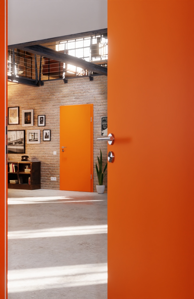 Ponadczasowy kolor: Gładkie drzwi wewnętrzne w pastelowym pomarańczu od producenta marki Lebo wprowadza kolor do Twojego wystroju wnętrz. Prosta linia krawędzi doskonale wpasowuje się w niemal każdą architekturę wnętrz.