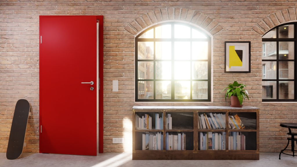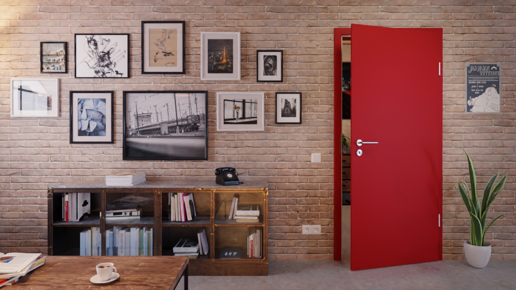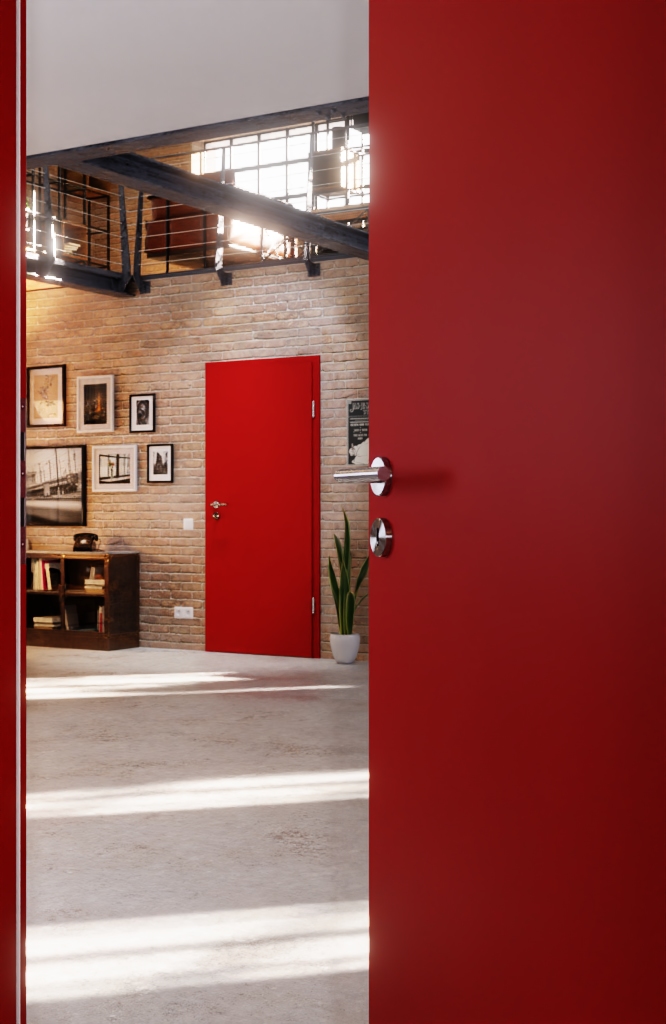 • Intensywnie kolorowe drzwi wewnętrzne w kolorze czerwony głęboki