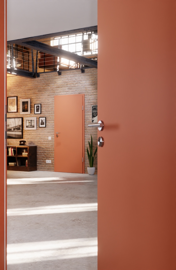 Zrównoważona paleta kolorów uzyskiwana jest dzięki maszynowemu lakierowaniu, które nakładane jest wielokrotnie z obu stron skrzydła drzwi. Warstwa przezroczystego lakieru utwardzanego UV dodatkowo chroni powłokę.