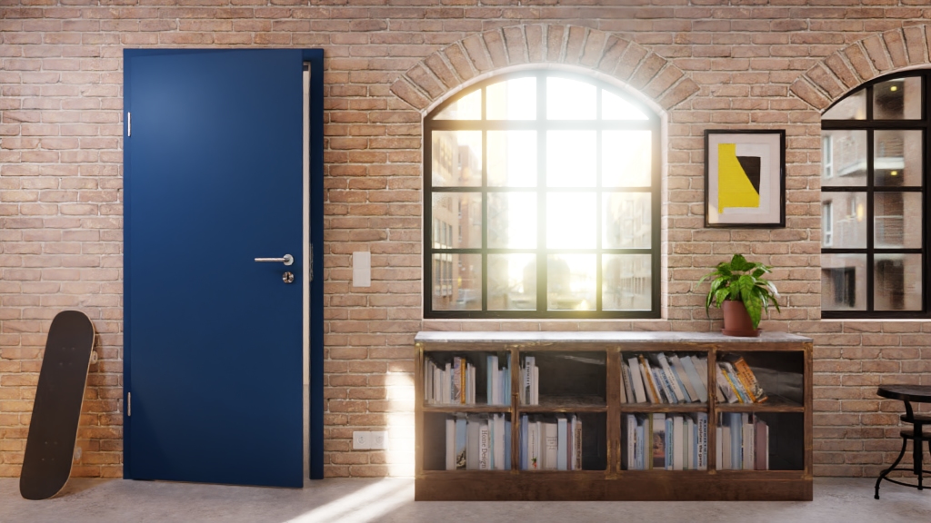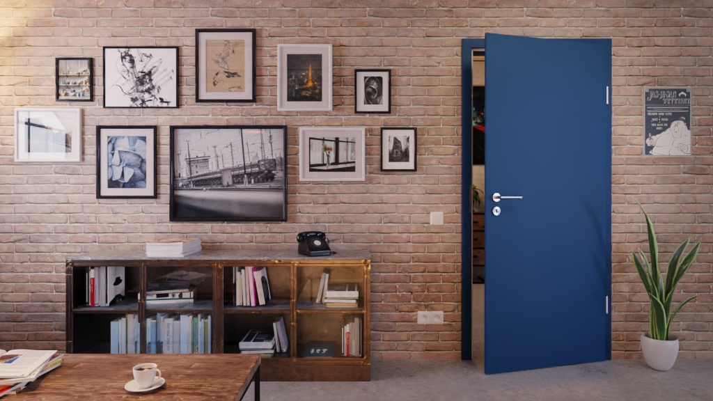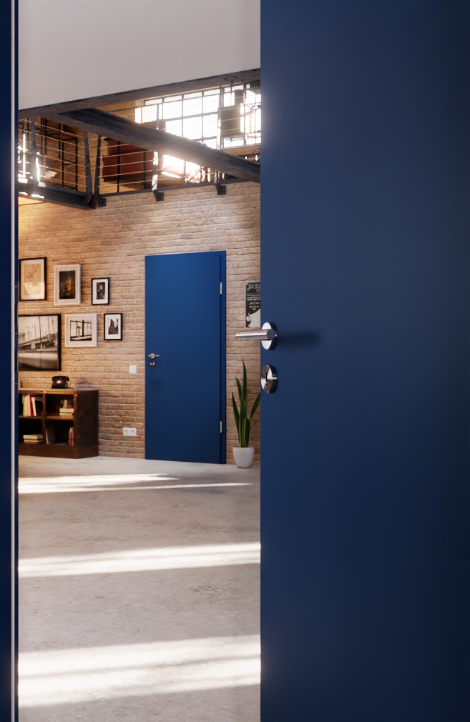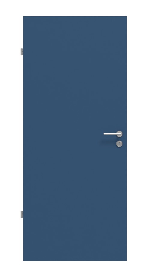 Ponadczasowy kolor: Wygląd drzwi wewnętrznych lakierowanych w kolorze fioletowo-niebieskim od renomowanego producenta Lebo jest prosty i subtelny.