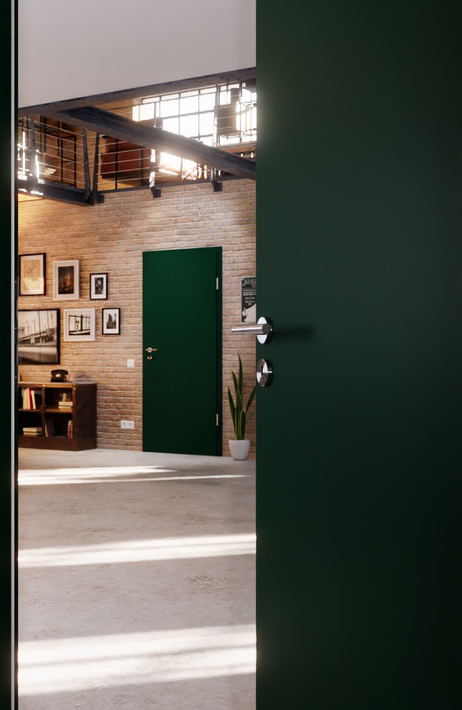 Kolorowy design dla każdego gustu: Subtelne, gładkie drzwi wewnętrzne od Lebo zachwycają prostotą i intensywną kolorystyką w kolorze mchu.