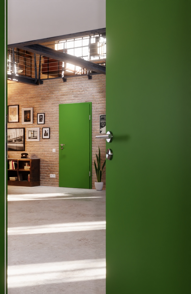 Solidny model z urokiem: Dzięki prostej, gładkiej konstrukcji skrzydła drzwi, drzwi wewnętrzne Lebo w kolorze majowej zieleni pasują do każdego stylu wnętrza.