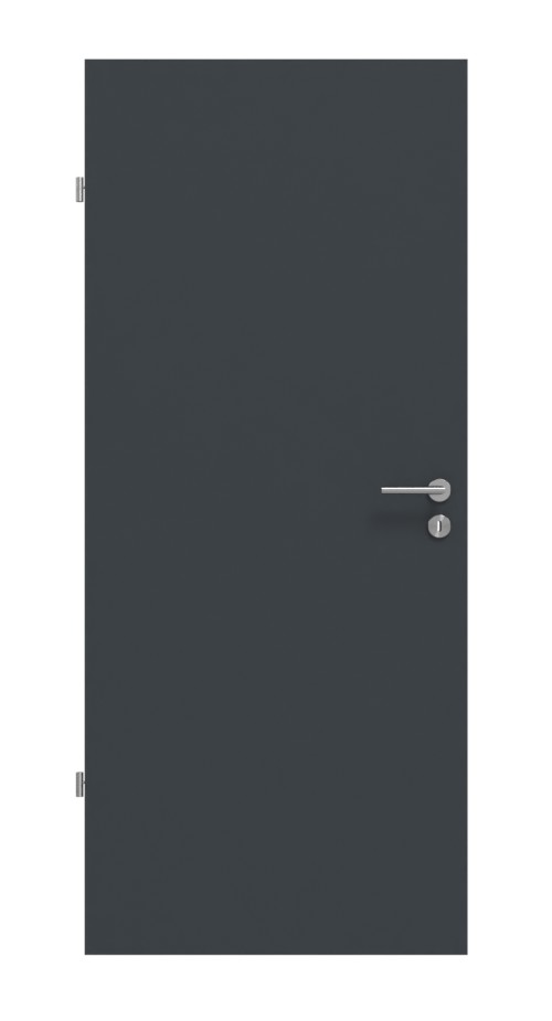 Solidny model z urokiem: Wygląd drzwi wewnętrznych lakierowanych w kolorze antracytowym od renomowanego producenta Lebo jest prosty i subtelny.