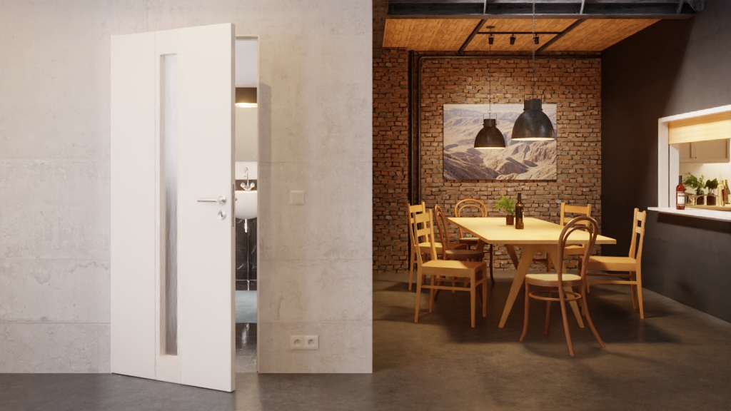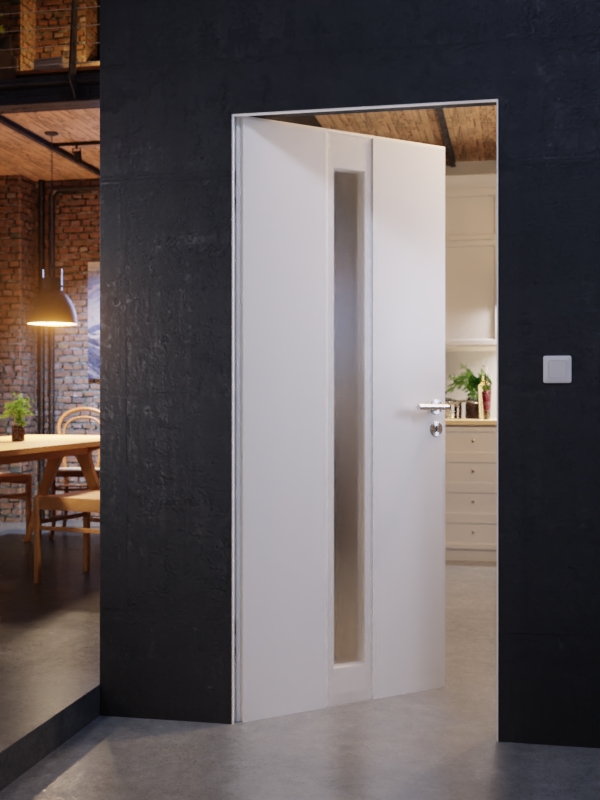 Dzięki drzwiom z chowanym skrzydłem i niewidocznymi zawiasami drzwi tworzą jednolity obszar z ścianą. Dodatkowym atutem jest możliwość otwierania drzwi w obu kierunkach (otwierane wstecz).