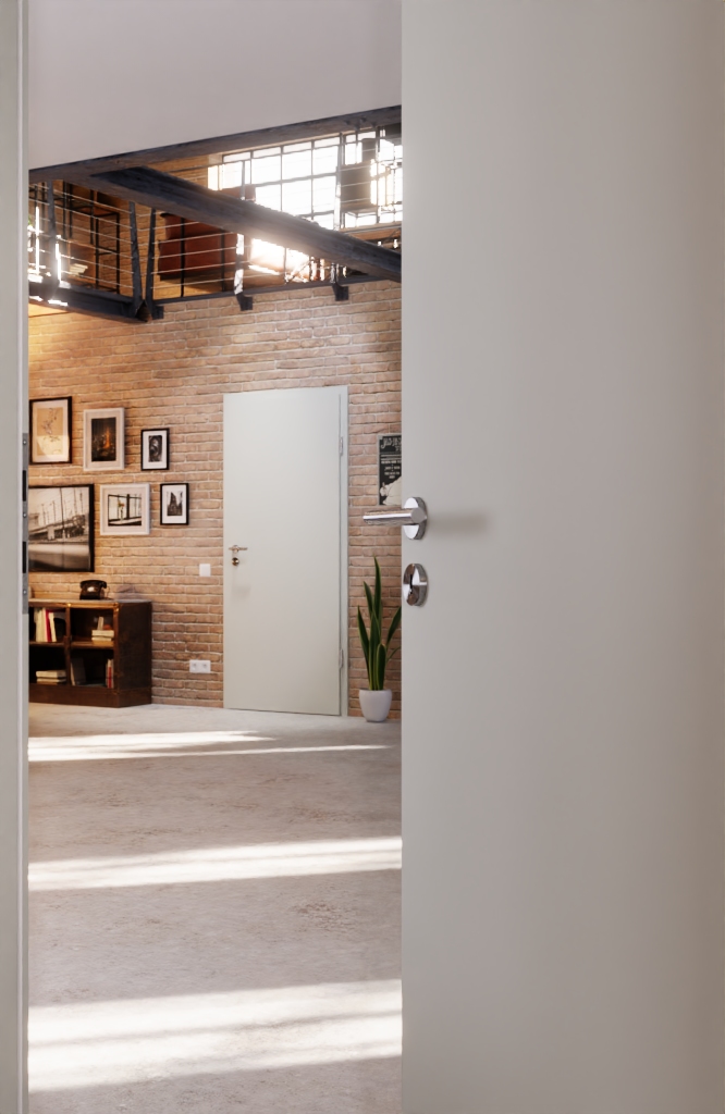 Kolorowy design dla każdego gustu: Drzwi wewnętrzne od Lebo zachwycają prostymi krawędziami, gładką powierzchnią drzwi oraz kolorowym lakierem w kolorze białego papirusu.