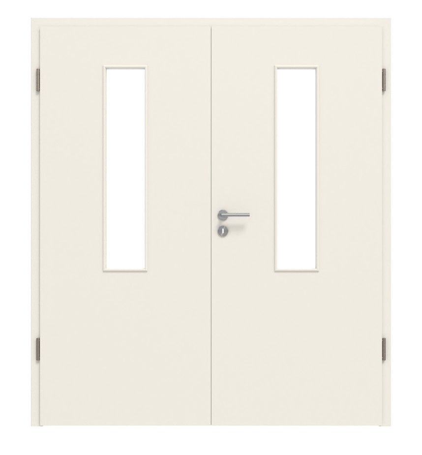 Malowana podwójna drzwi ProLine w RAL 9010 z pełną płytą wypełnieniową i trzema zawiasami: