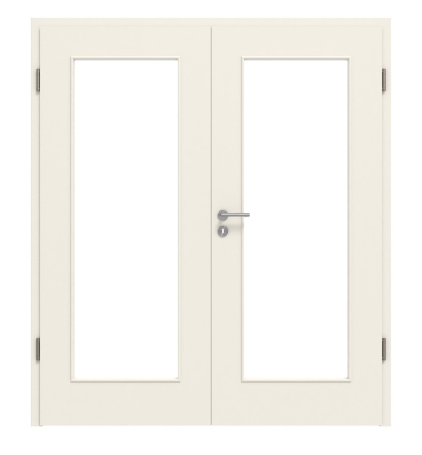 Drzwi podwójne ProLine w RAL 9010 z trzema zawiasami i stabilizującą płytą pełno-włóknistą: