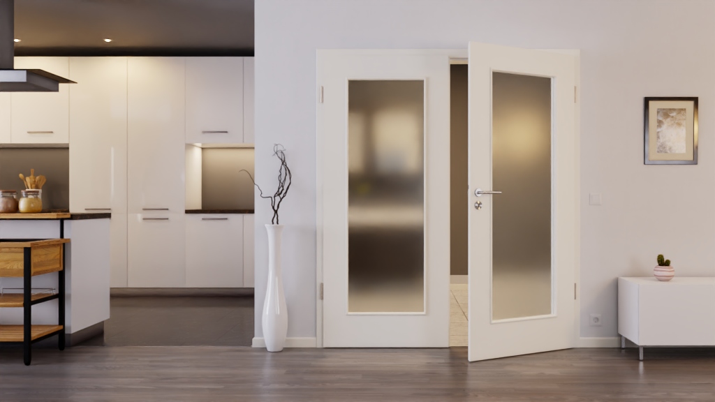 Wytłoczenia szklane rozciągają się niemal na całej powierzchni skrzydeł drzwiowych. W ten sposób zapewniają ogromny dopływ światła i tworzą przestrzeń wypełnioną światłem.