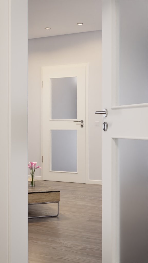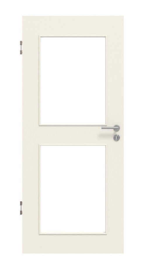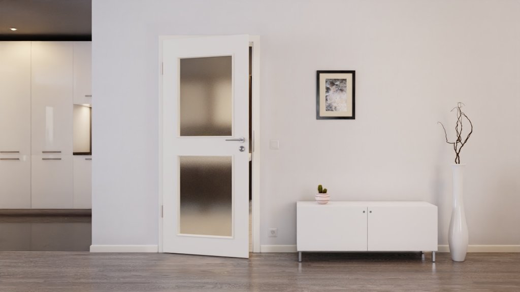 Dwa jednakowej wielkości wycięcia świetlne są wyśrodkowane i stanowią atrakcyjny element drzwi. Wpuszczają dużo światła do pomieszczenia, tworząc pozytywną atmosferę.