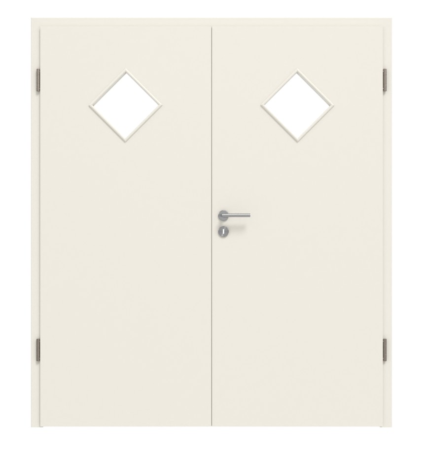 Malowane drzwi podwójne ProLine w RAL 9010 z stabilną płytą wiórową i trzema zawiasami: