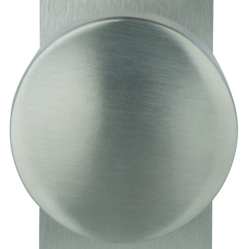 Prosta forma długiej tarczy ze stali nierdzewnej pasuje do niemal każdego stylu wnętrza. Klamka po wewnętrznej stronie drzwi wejściowych ma kształt litery L. Na zewnątrz znajduje się prosty, okrągły przycisk. Sprężyna podtrzymująca wewnątrz klamki utrzymuje ją w idealnej pozycji.