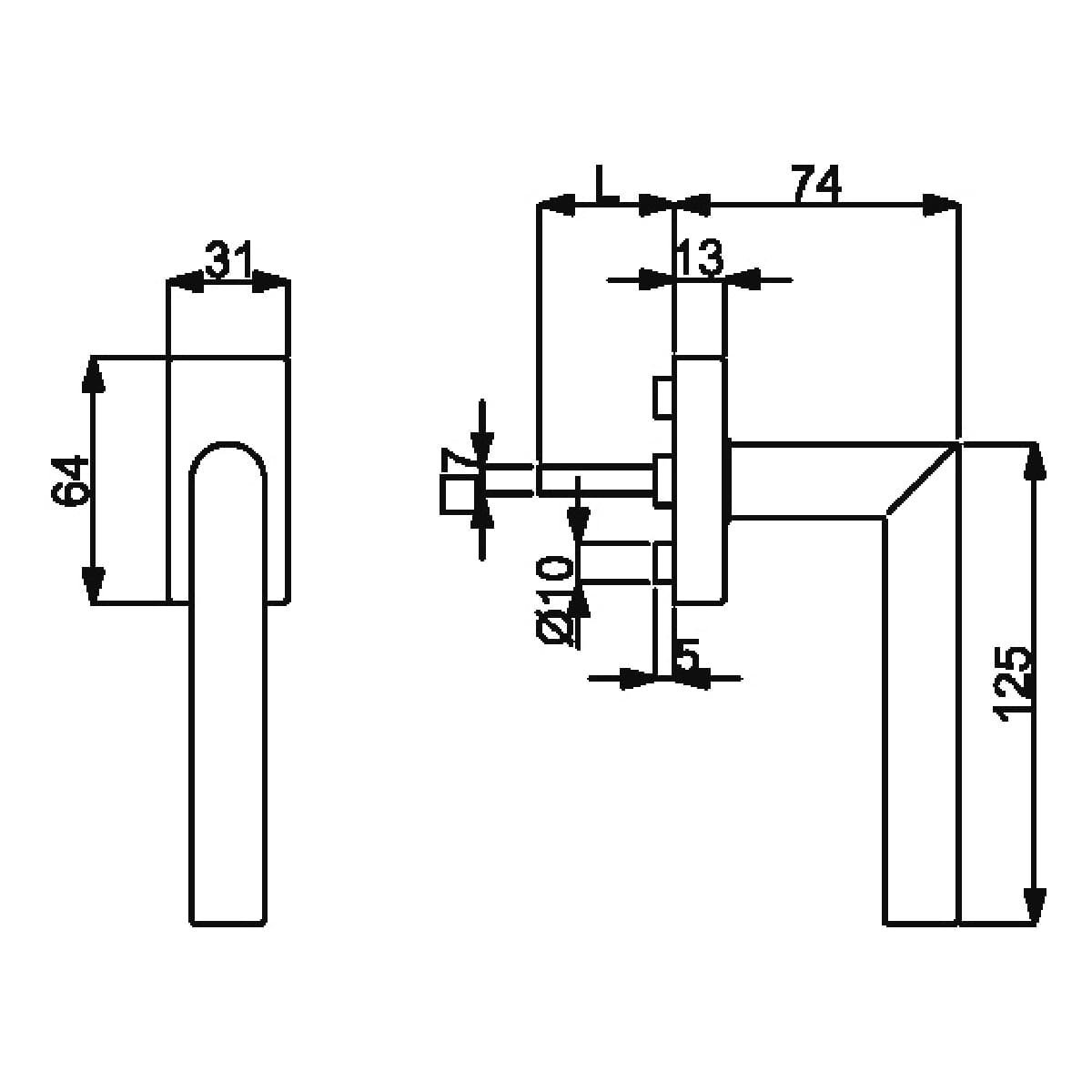 Całość w nowoczesnym wyglądzie składa się z kwadratowej rozetki oraz cylindrycznego uchwytu w kształcie L. Czysta, minimalistyczna estetyka jest wzmocniona przez matową powierzchnię ze stali nierdzewnej.