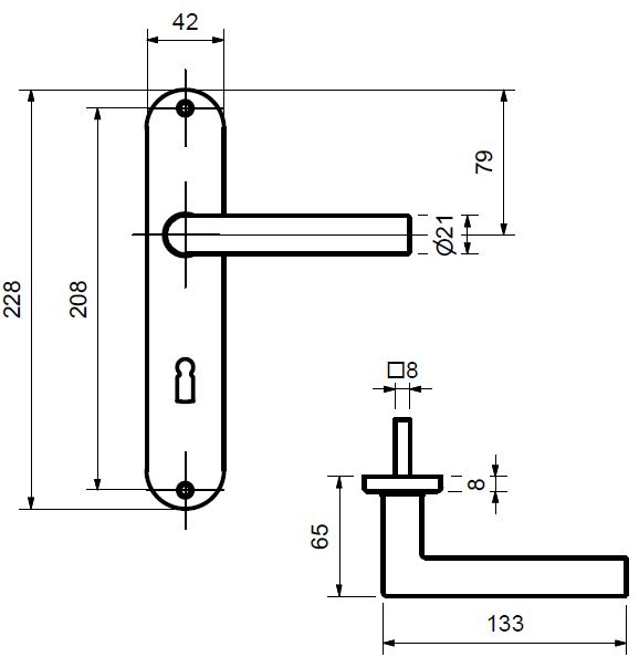 Na widocznie przykręconej długiej tarczy z perłowo-satynową powierzchnią aluminiową znajduje się prosty uchwyt w kształcie cylindra.