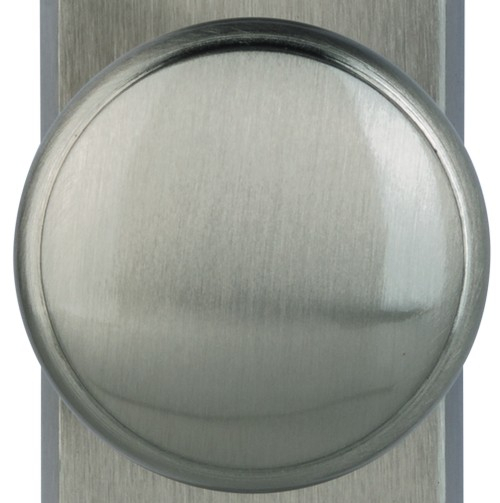 Na zewnątrz drzwi wejściowych wita Cię okrągły gałka. Wewnątrz widocznie przykręcona długa tarcza jest uzupełniona cylindrycznym uchwytem. Szczególnie interesująca jest kombinacja matowych i błyszcząco-polerowanych elementów garnitury. Sprężyna podtrzymująca wewnątrz klamki utrzymuje uchwyt w idealnej pozycji.