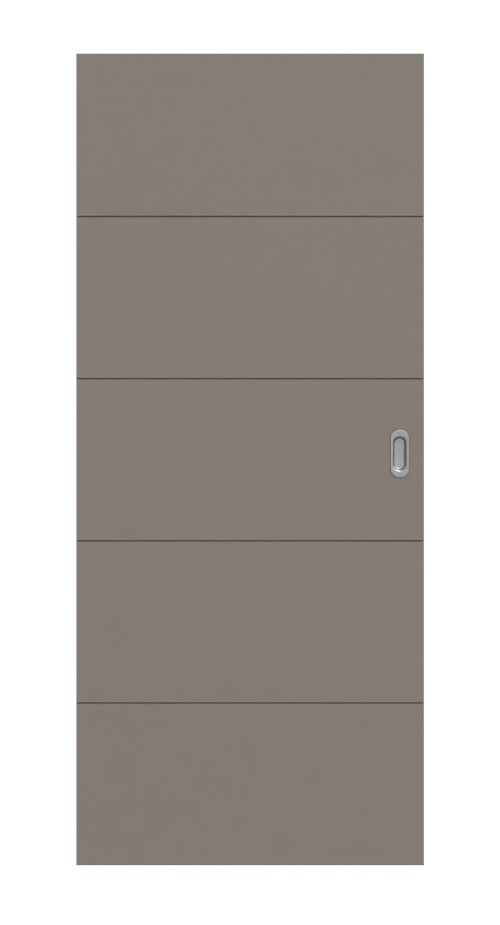 W skrzydle drzwi wyfrezowano cztery poziome szczeliny . Sięgają one aż do krawędzi skrzydła drzwi. Dzięki szaro-brązowej lakierowanej powierzchni model ten pasuje do każdego wystroju wnętrza.