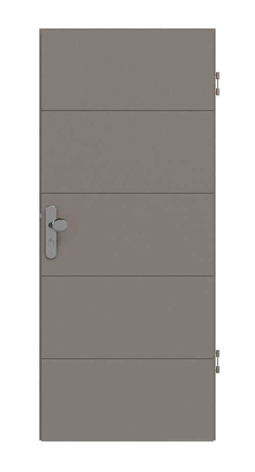 W skrzydle drzwi wyfrezowano cztery poziome szczeliny . Sięgają one aż do krawędzi skrzydła drzwi. Dzięki szaro-brązowej lakierowanej powierzchni model ten pasuje do każdego wystroju wnętrza.