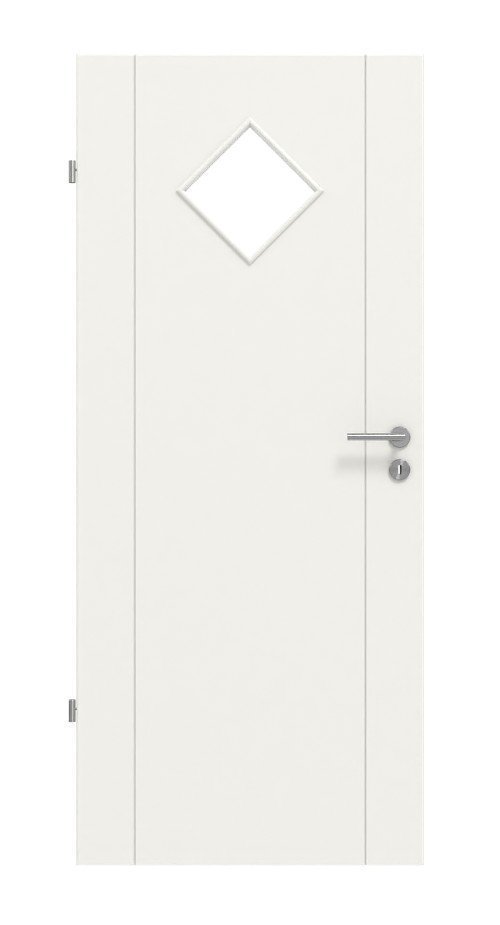 Praktyczne drzwi wewnętrzne w białym lakierze z pełną płytą w środku: