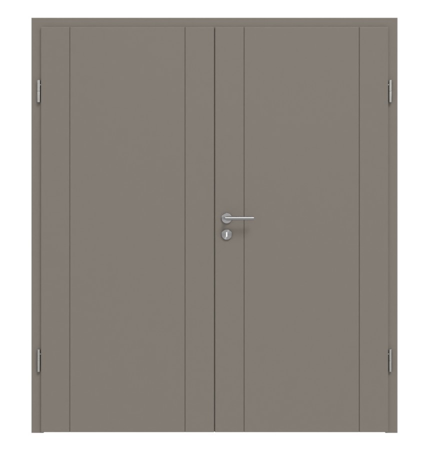 Łatwa w pielęgnacji ościeżnica firmy Hörmann w kolorze taupe (kolor ciemnoszaro-brązowy) RAL 7048 do Twoich drzwi 2-skrzydłowych: