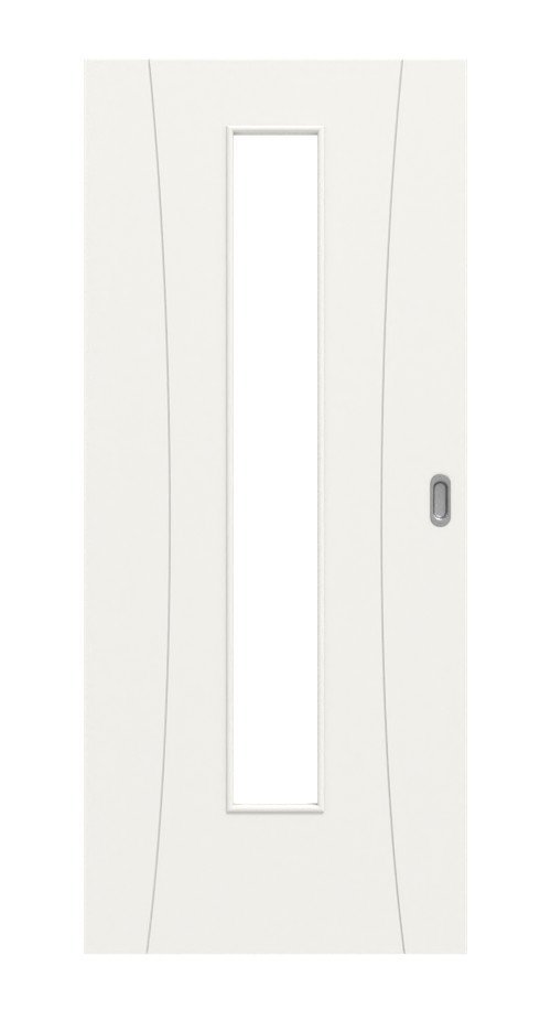 Po lewej i prawej stronie drzwi znajduje się podłużna szczelina. Wysokiej klasy białe wykończenie podkreśla gustowny wygląd. W środkowej części znajduje się wąskie wycięcie na szybę, przez które do wnętrza wpada dużo światła.