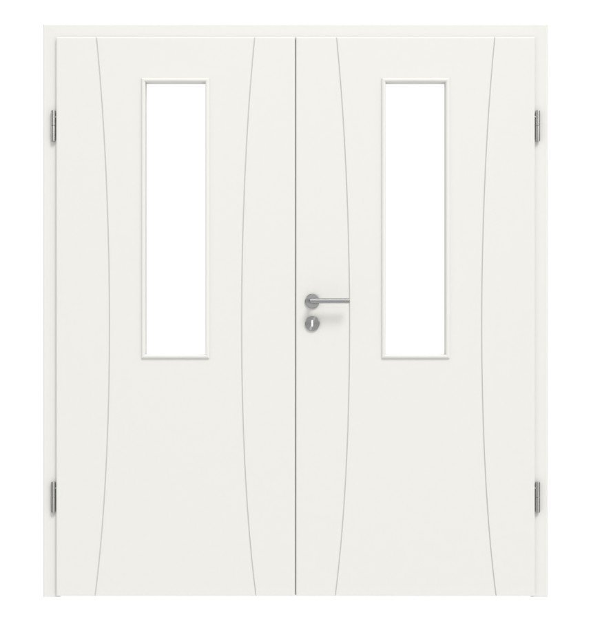 Estetyczny model drzwi podwójnych w białym lakierze o łatwej do czyszczenia powierzchni: