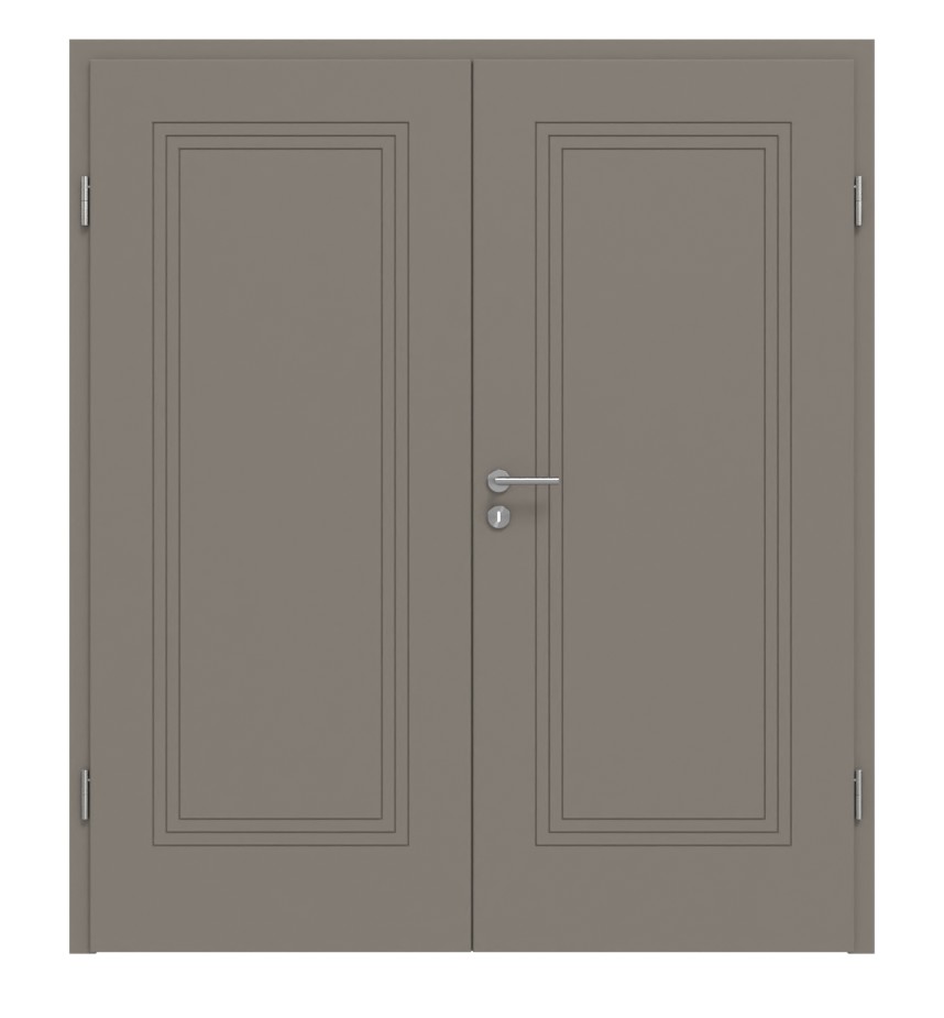 Stylowy model drzwi podwójnych w kolorze taupe RAL 7048 o trwałych właściwościach: