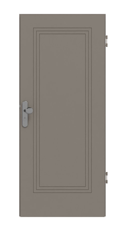 Dzięki trzem wyfrezowanym fugom na skrzydle drzwiowym powstaje gustowny wzór kasetonowy. Wysokiej jakości lakier w kolorze szarobrązowym podkreśla eleganckie wykończenie wizualne.