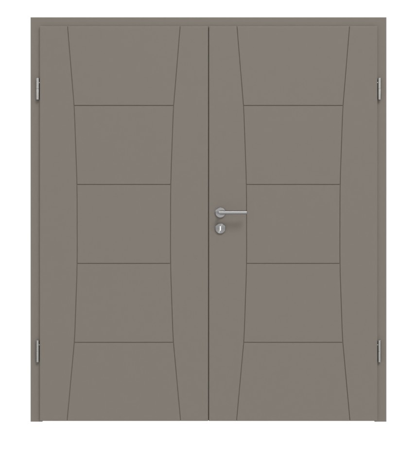 Elegancka podwójna drzwi w kolorze taupe RAL 7048 z łatwą w pielęgnacji powierzchnią:
