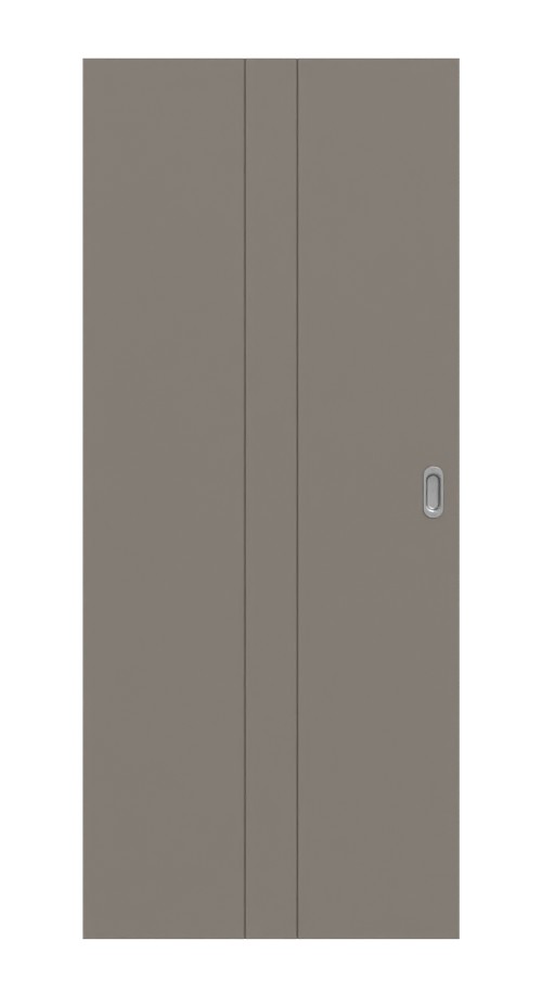 Spójne drzwi przesuwne w kolorze taupe RAL 7048 z owalnym uchwytem: