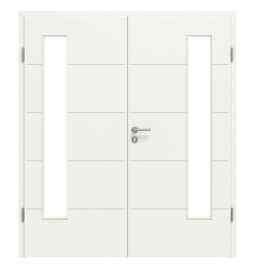 HÖRMANN Drzwi dwuskrzydłowe Groove 27 biały lakier DesignLine z przeszkleniem LA 24 po stronie zawiasów z ościeżnicą